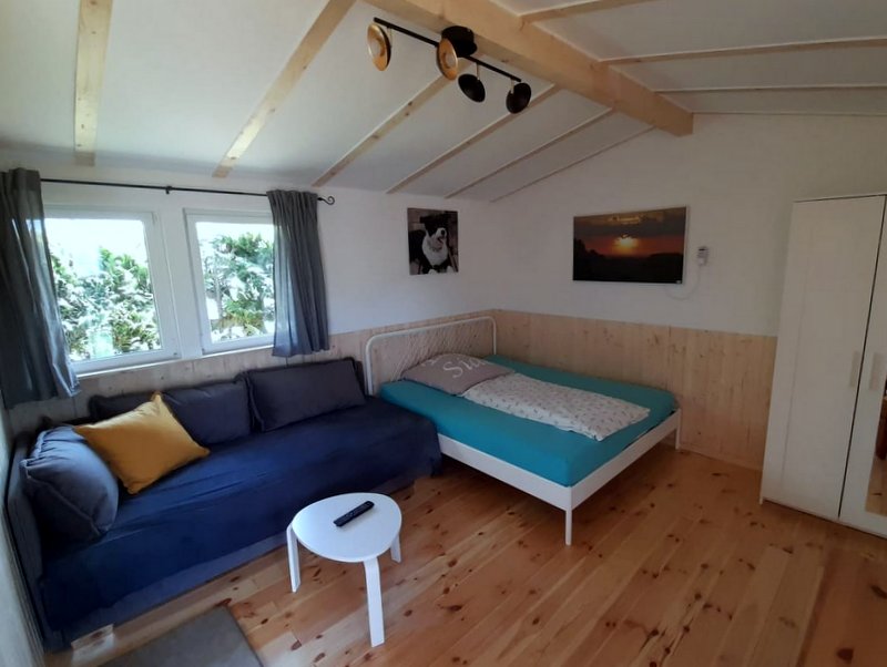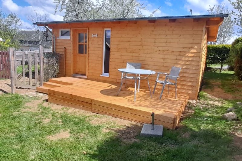 Unser Nichtraucher-Haus Susi ist ein gemütliches, kleines Holzhaus. Es verfügt über einen eingezäunten Garten (1,40m, Wildzaun). Sonnenschirm und Gartenliegen stehen ebenfalls zur Verfügung.